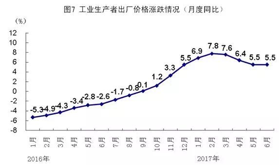 上半年,全国工业生产者出厂价格同比上涨6.6%,涨幅比一季度回落0.8个百分点。6月份,全国工业生产者出厂价格同比上涨5.5%,涨幅与上月持平,环比下降0.2%。上半年,全国工业生产者购进价格同比上涨8.7%;6月份同比上涨7.3%,环比下降0.4%。