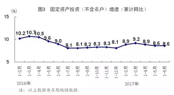 过剩产能有序化解,上半年全国工业产能利用率为76.4%,比上年同期提高3.4个百分点。房地产去库存效果继续显现,6月末商品房待售面积同比下降9.6%,降幅比3月末扩大3.2个百分点。企业杠杆率下降,5月末规模以上工业企业资产负债率为56.1%,同比下降0.7个百分点。企业成本继续降低,1-5月份规模以上工业企业每百元主营业务收入中的成本为85.62元,同比减少0.04元。短板领域得到加强,上半年生态保护和环境治理业、水利管理业、交通运输仓储和邮政业、教育投资同比分别增长46.0%、17.5%、14.7%和17.8%,均明显快于同期固定资产投资增速。