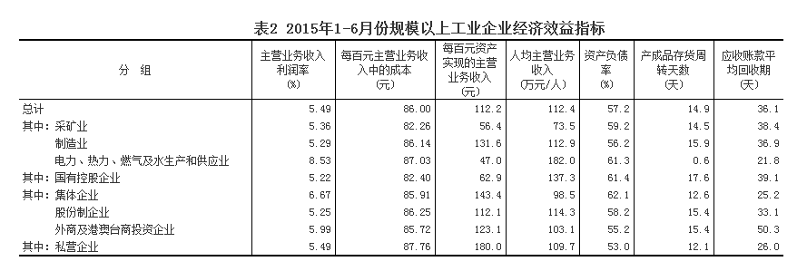 表32015年1-6月份规模以上工业企业主要财务指标(分行业)